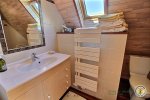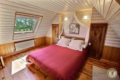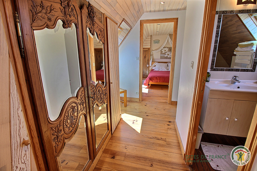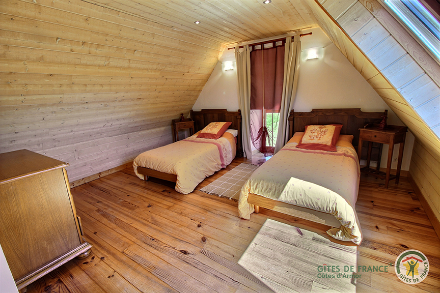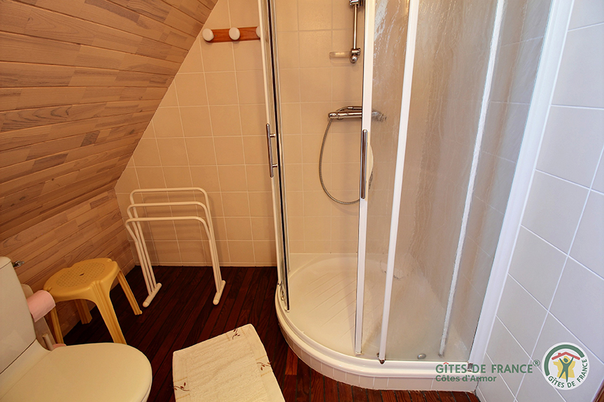 A l’extérieur, située à deux pas de la longère, une maisonnette en granit prénommée le “Ty Coz” abrite une 3ème chambre avec lit double (160 x 200) , une salle d’eau privative (bac à douche) avec WC.