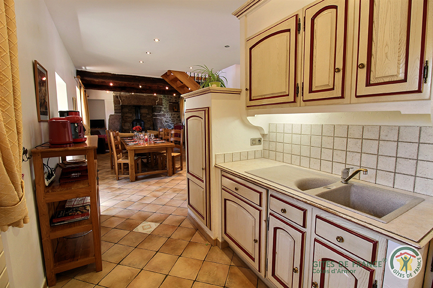 - une cuisine parfaitement équipée ouverte sur un espace de v ie coquet et chaleureux. Vous y apprécierez le poêle à bois suspendu dans une cheminée en pierres